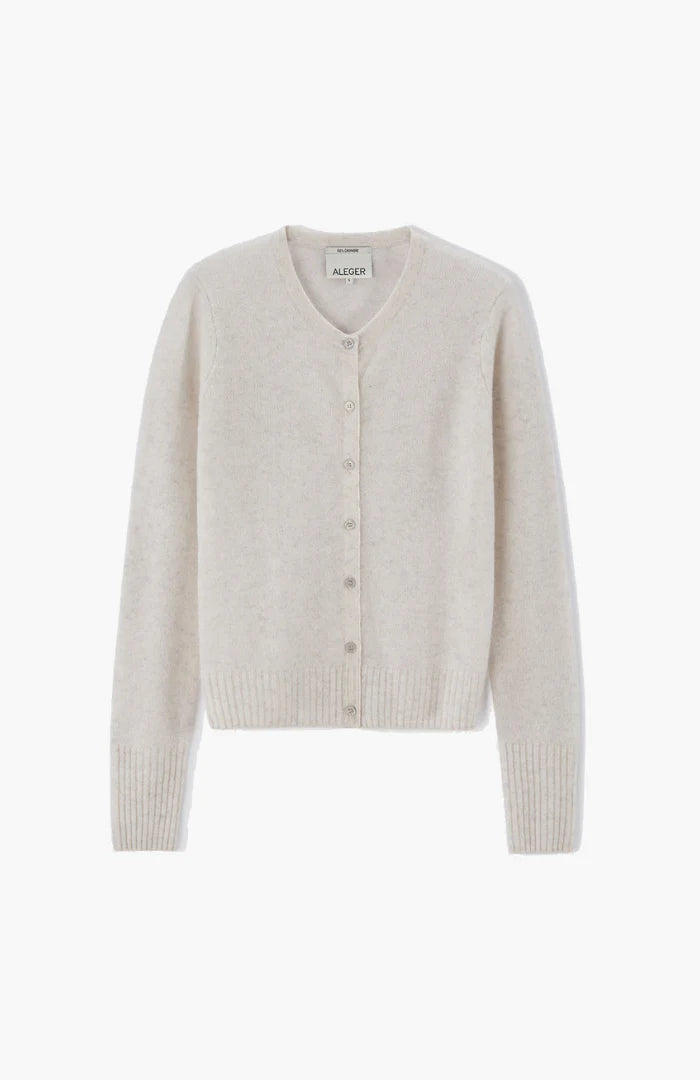 The ALEGER featherweight slim crew cardigan is crafted from ultra-soft, sustainably sourced Cashmere. A refined trans-seasonal staple, it’s designed with a sleek silhouette, subtle detailing, and a softly ribbed finish.
