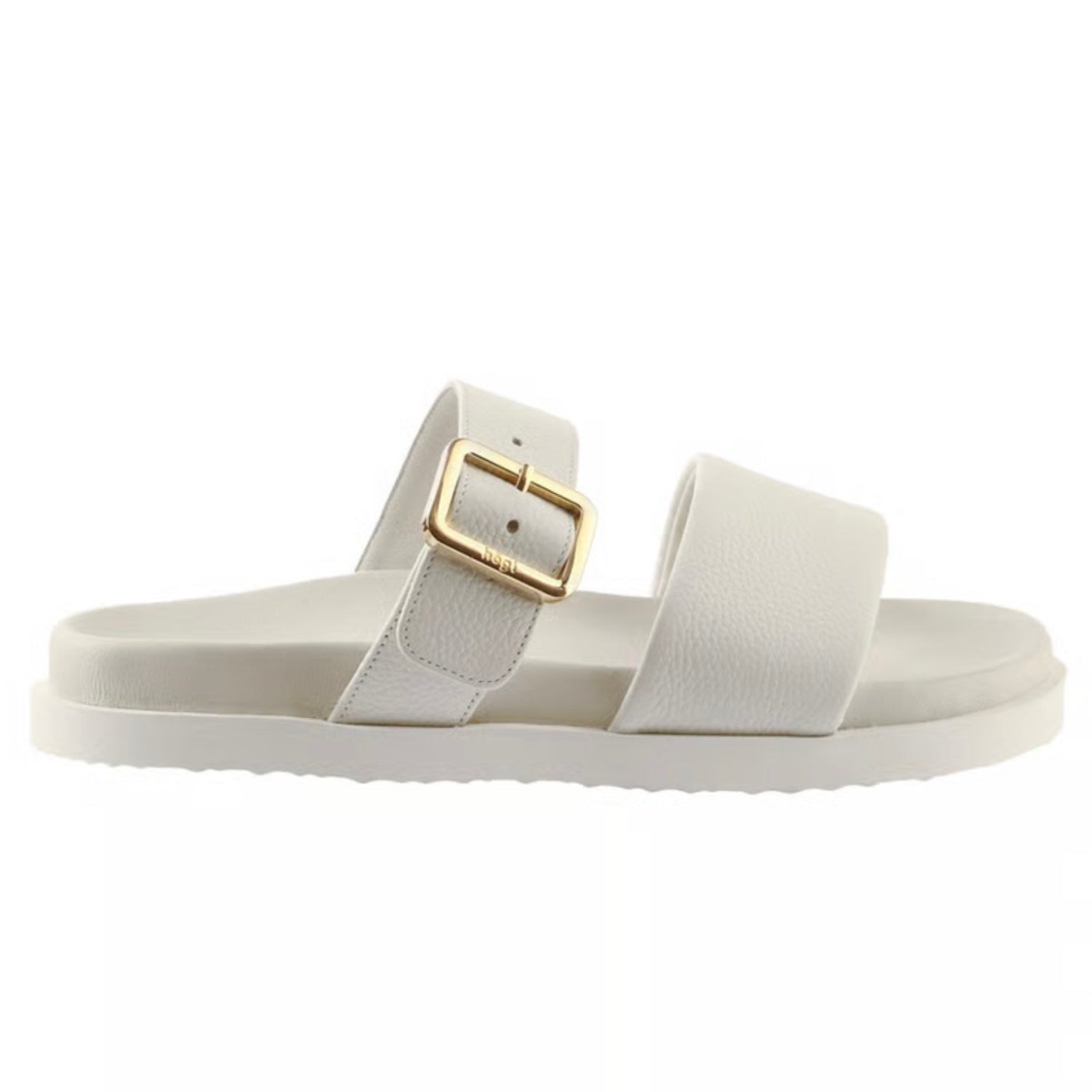 Cream, leather HÖGL summer slides with leather, anatomically profiled insole. Such airy shoes with an adjustable strap fastened with a buckle are an excellent choice for everyday life.