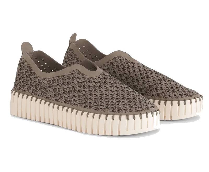 This light weight shoe by Ilse Jacobsen is perfect for any occasion and has a 3 3/4 cm platform. This shoe is practical, very comfortable and stylish. It has a flexible outsole made of natural rubber and upper.  Made of recycled microfibre the breathable small laser cut pattern, makes it the perfect travel shoe. This cool and practical shoe is an absolute must have and  will never go out of fashion.