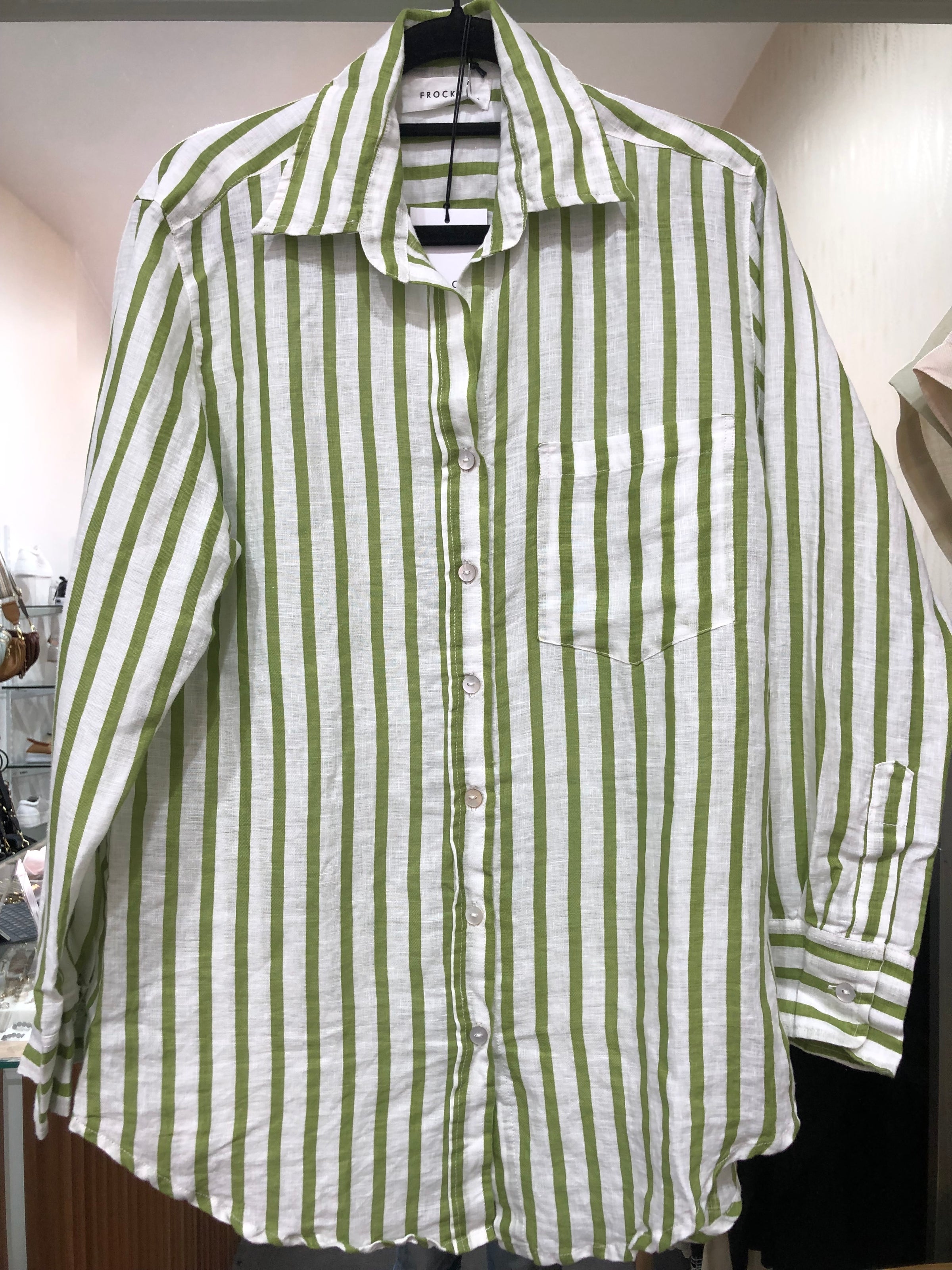 This shirt is the essential, classic linen shirt. It is a button through with long sleeves, made from 100% washed linen. Erika fits true to size for a relaxed but not oversized fit.