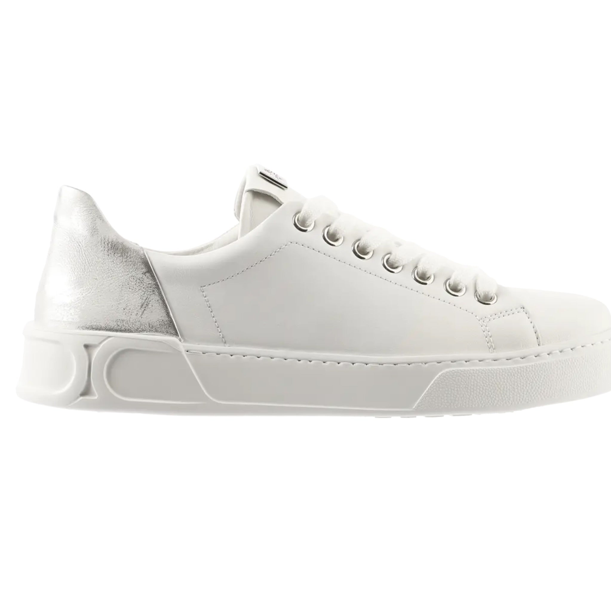Retro sneakers with an innovative look: our white, casual skater-style design by Hogl. The brushed metallic finish appliqué details at the heels are eye-catching. The feminine silhouette is perfected by round toe caps. These leather sneakers are incredibly comfortable thanks to the fabric lining and the memory foam insoles. The latter perfectly adapt to your feet – this is a level of wear comfort that makes you feel like you're walking on clouds. These Högl women's shoes go equally as well with a playful summer dress as they do with casual denim outfits.