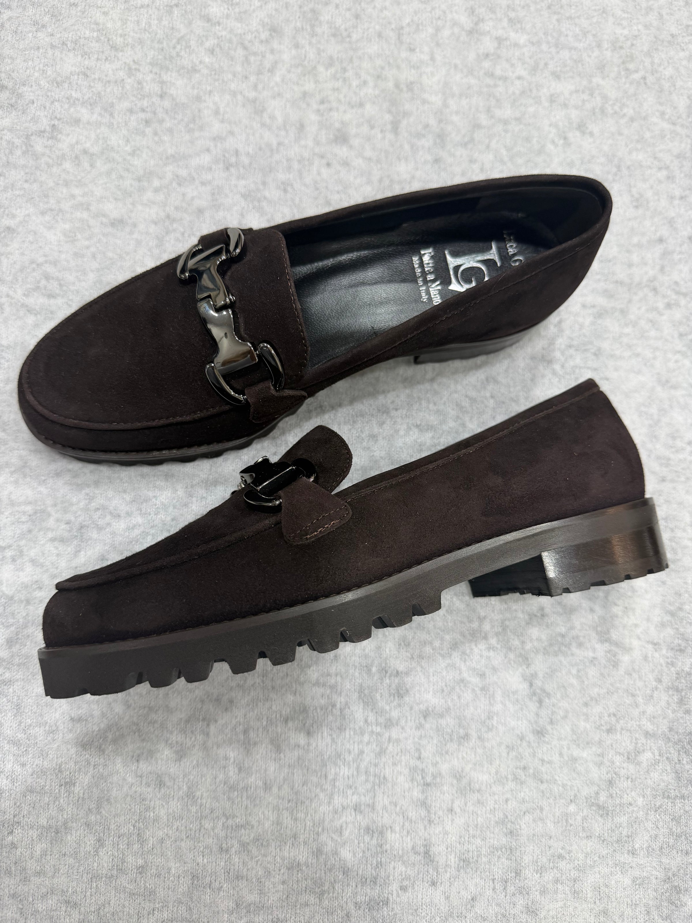 Luca Grossi suede chocolate loafer. Made in Italy.