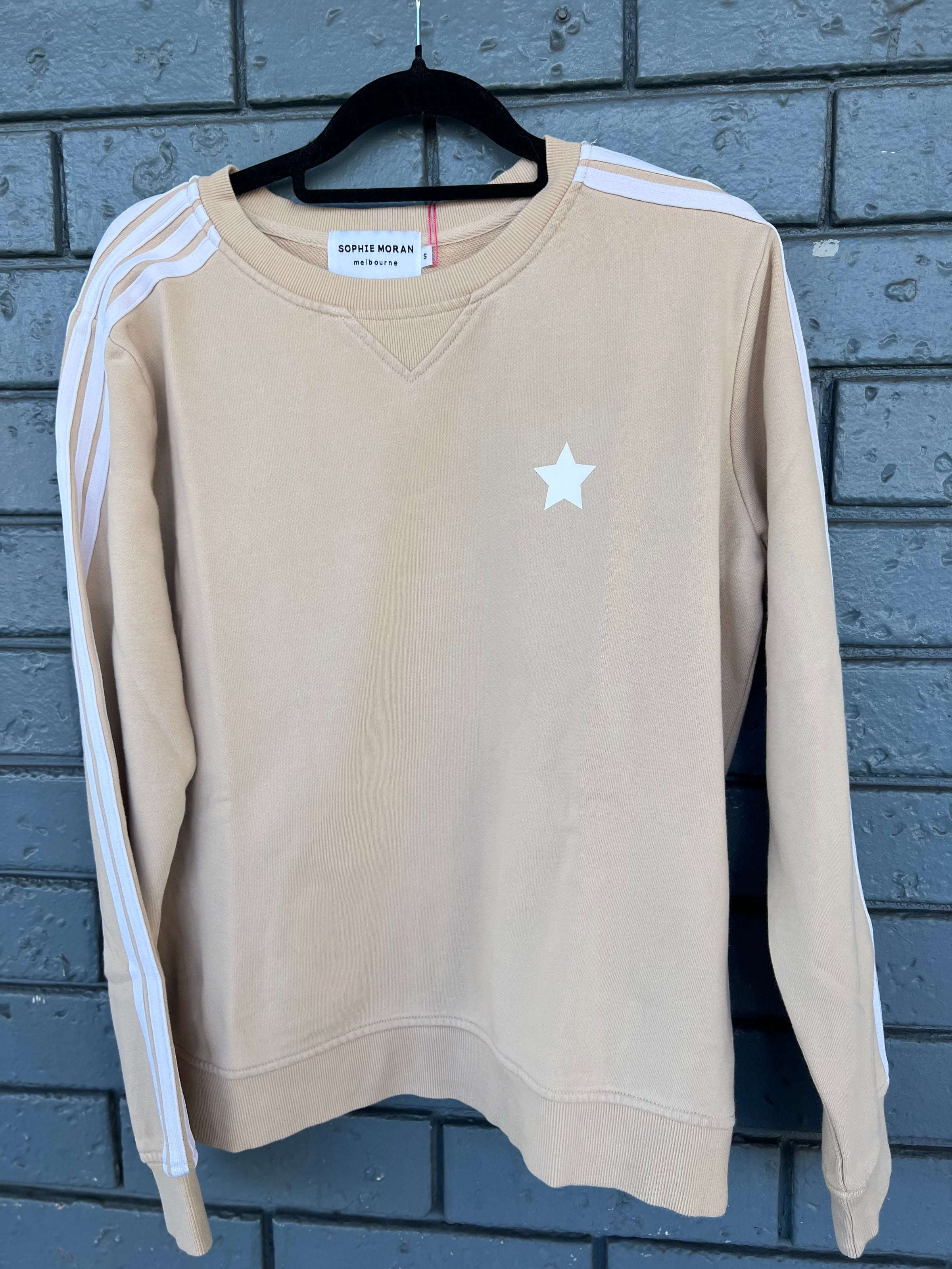 • Relaxed crew neck sweatshirt with stripes down the sleeve and a little star on the front