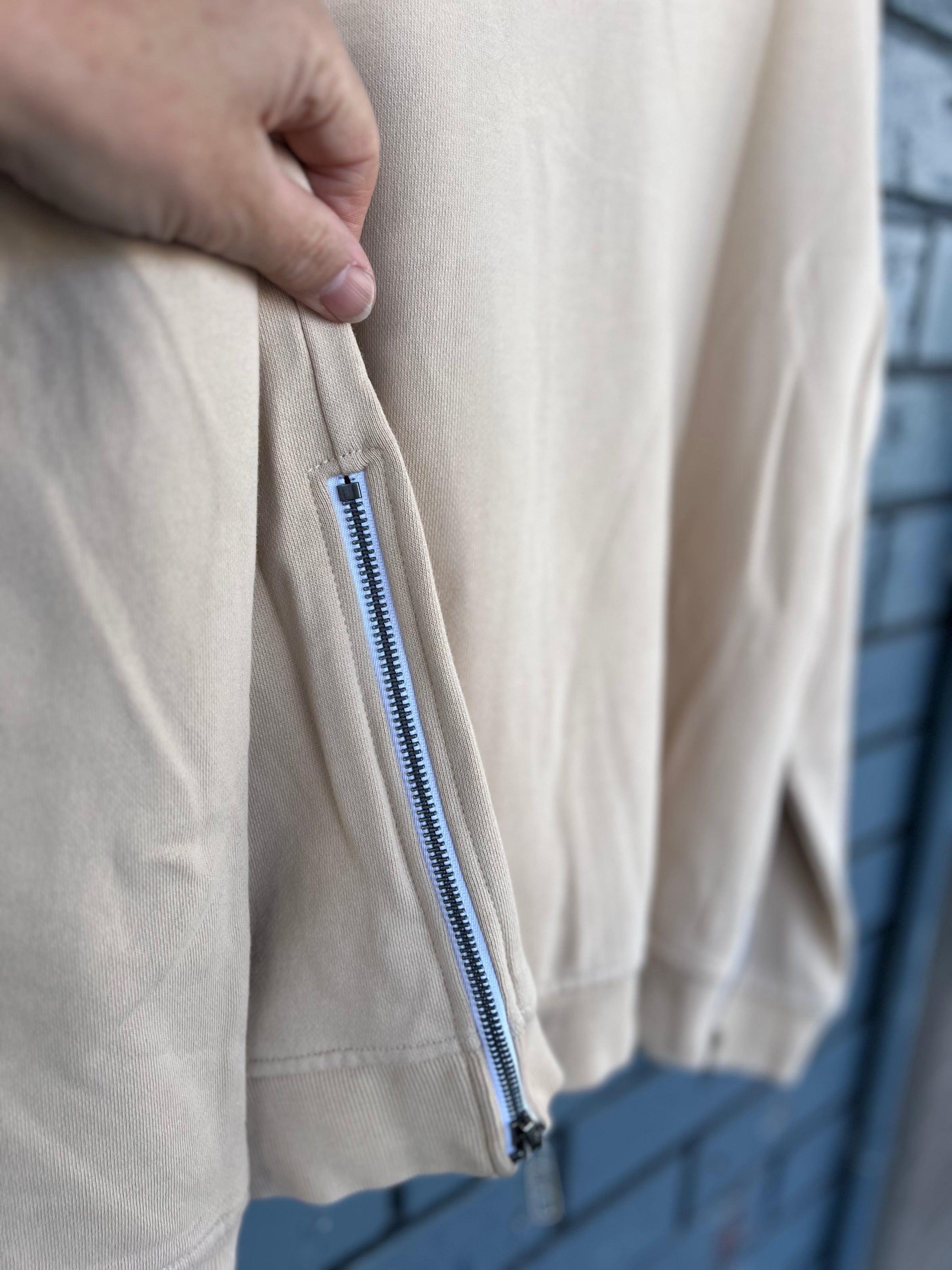 • Relaxed, Forgiving with zips on each side …Its not an oversized fit.